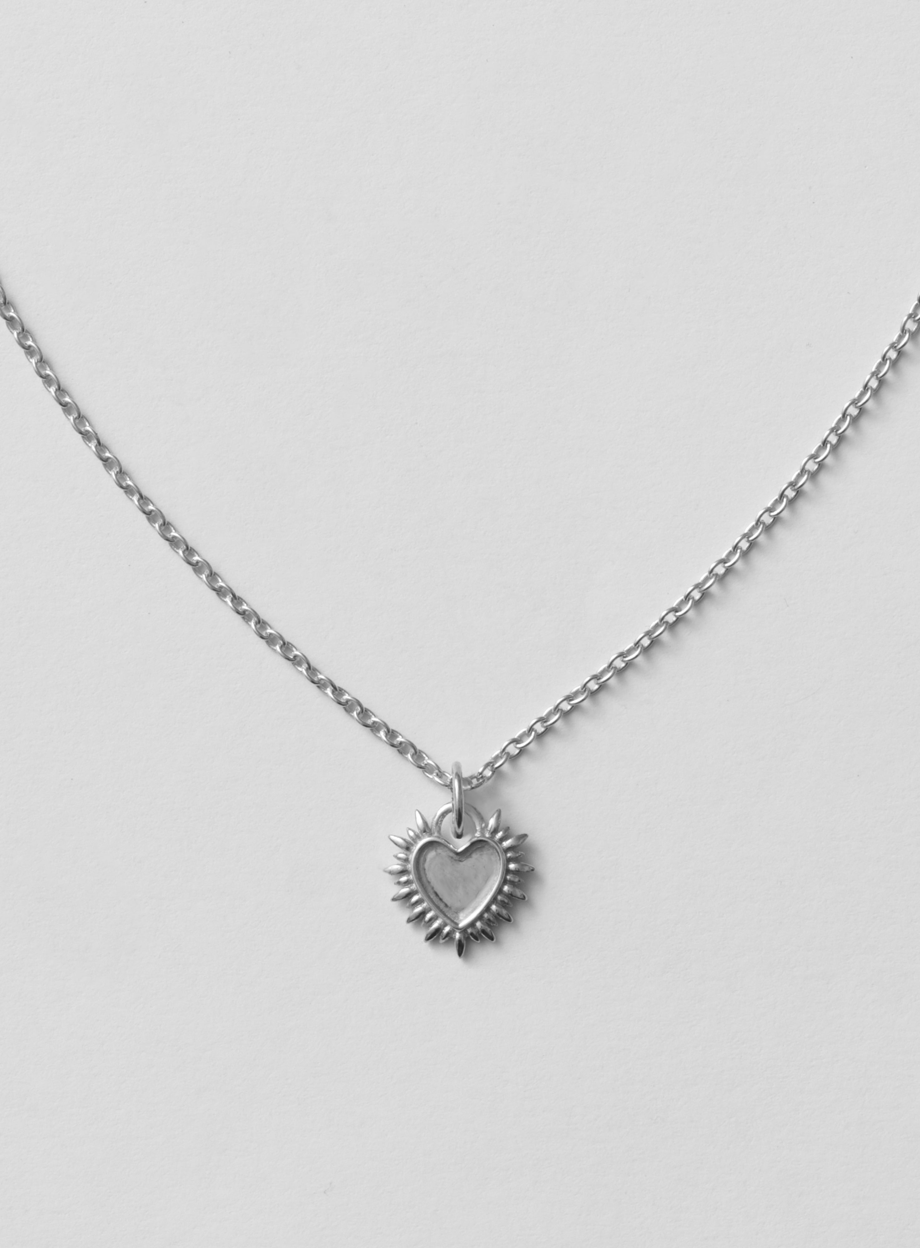 A smaller take on one of our boldest symbols. The Mini Spiky Heart carries the same edgy silhouette as the original, inspired by our iconic Sun Hoops — a heart with attitude. Looks great layered on the Thin Chain 40 cm, as smaller charms always find their balance on shorter chains.