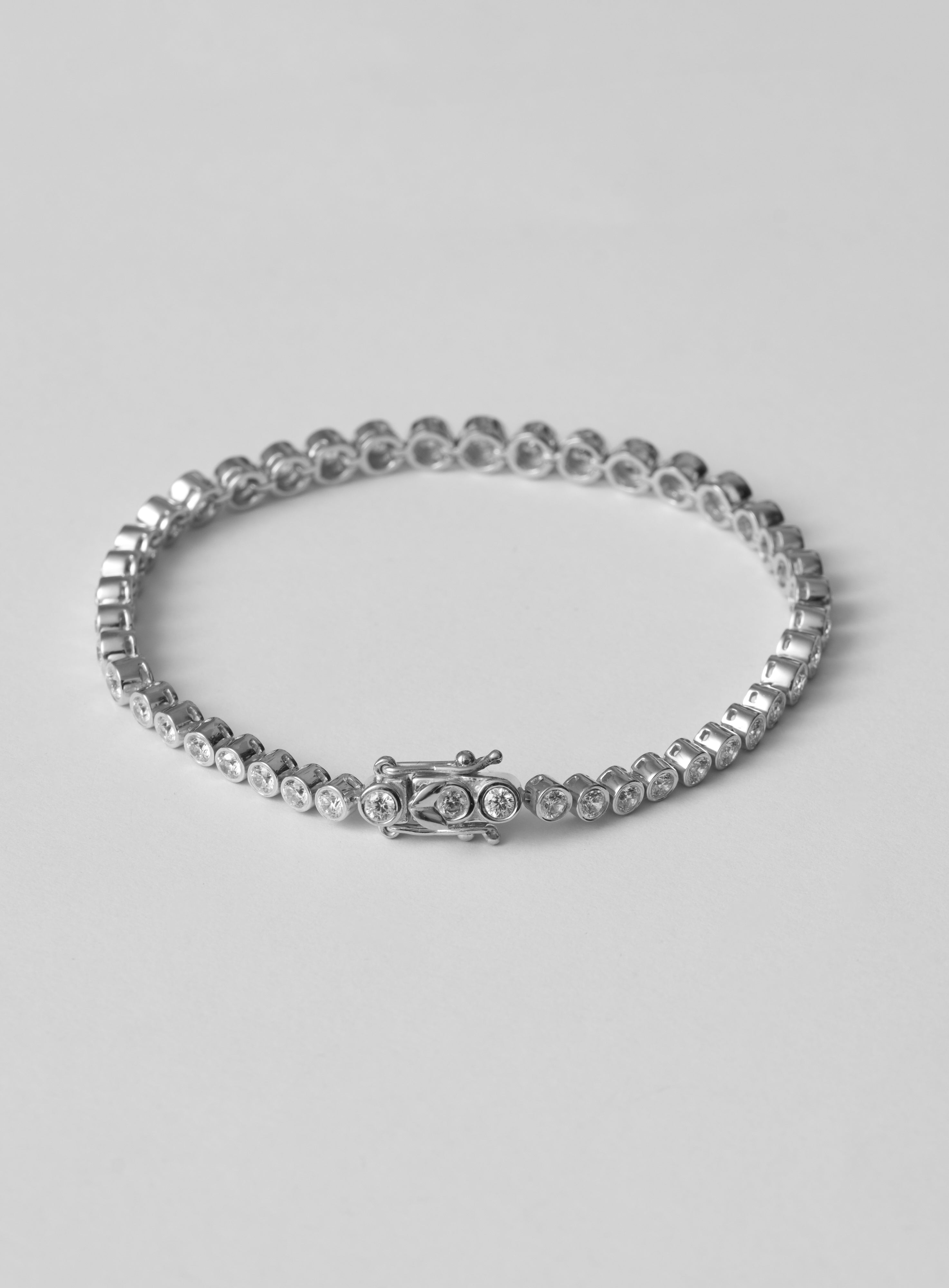A refined bracelet set with clear, precision-cut stones arranged in a continuous row with subtly varied sizes.